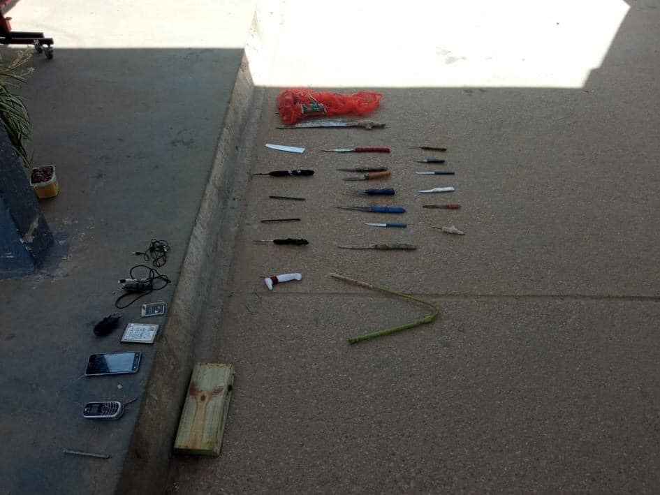 En la tarde del mismo día se requisaron los pabellones 1, 2, 3, 4, 5 y 6 del módulo 1 de la unidad n.°7 (Canelones), incautando 21 elementos corto punzantes, 2 celulares y un disco duro de computadora.