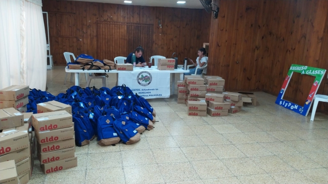 Cómo todos los años, y al ser un sindicato Nacional, nuestros delegados en cada Departamento se encuentran repartiendo y distribuyendo, horas y horas de recorridas para así llegar a tiempo y que nuestros niños tengan sus útiles.